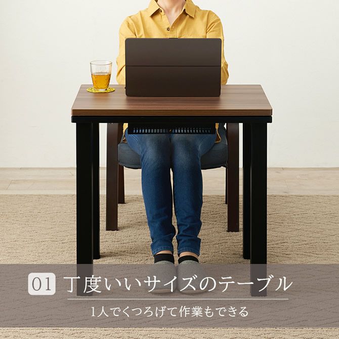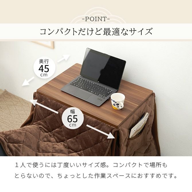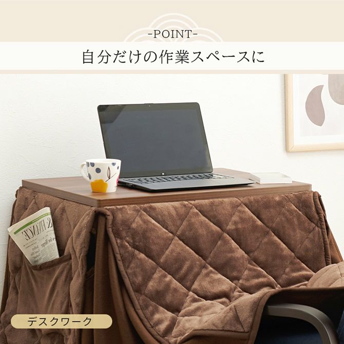 こたつ、チェア、布団の3点セットなので届いた日からすぐに温かい空間を確保できます。パソコンやデスクワークにも最適な天板サイズで、冬場だけではなく夏場もデスクとして大活躍!