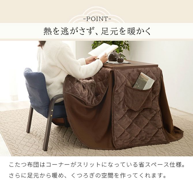 また、こたつの熱を逃がさない構造や、サイドポケット・チェア背面ポケットなど、使い勝手の機能も充実したセットです!