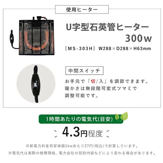 【機能など】 ■ヒーター:MS-303H(300W石英管ヒーター・中間スイッチ)