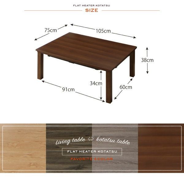 フラットヒーターこたつテーブル 【flatz】フラッツ 長方形
