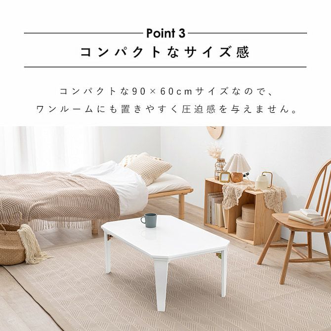 コンパクトサイズ&省スペース収納可能な折れ脚タイプ。どんなお部屋にもマッチするスタイリッシュなデザインで、オールシーズンお使い頂けます。