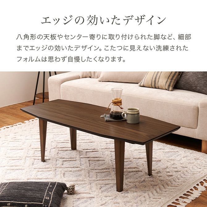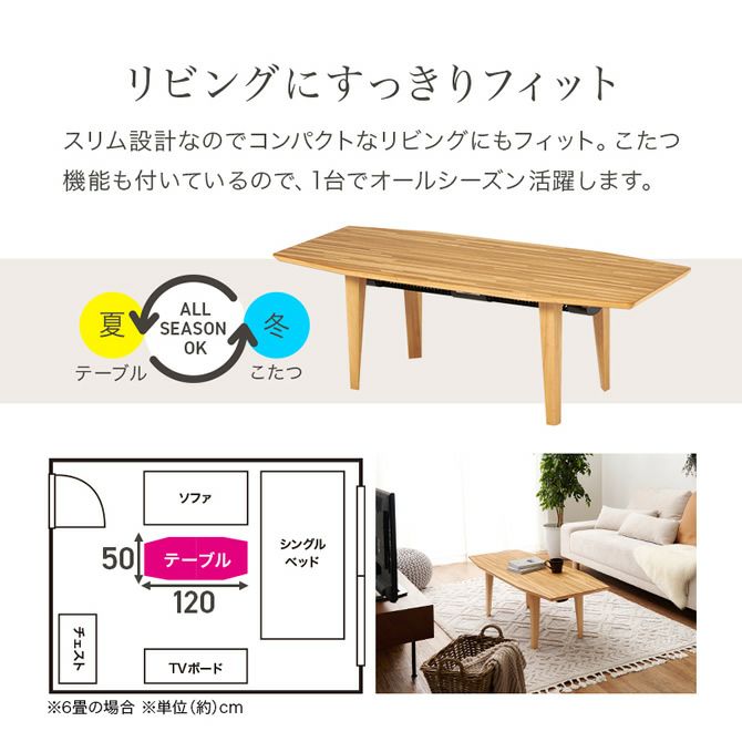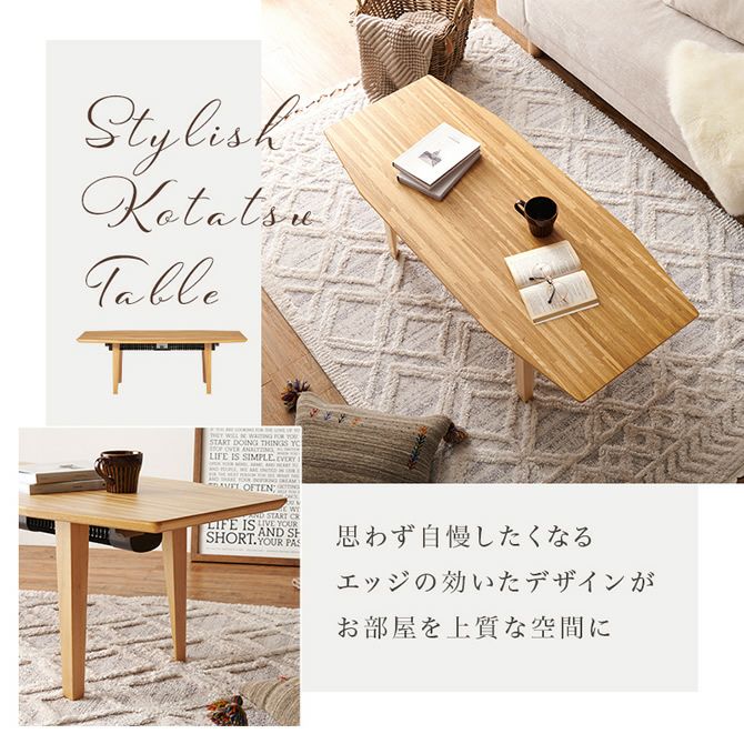 スリムでエッジの効いたスタイリッシュなデザインで、こたつ布団不要で使える優れもの。リビングテーブルとしても置きやすいので年中使用して頂けます。