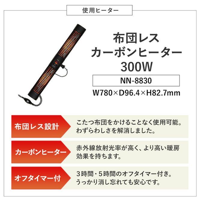 掛布団が不要のカーボンヒーターを使用しているので見た目もスタイリッシュなまま温かいお部屋を実現!各所にこだわりを持たせたつくりで品質の高さを実感頂けます。