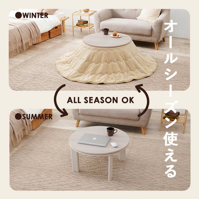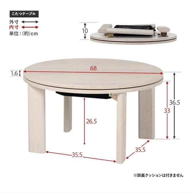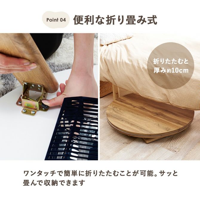 折れ脚タイプの円形こたつテーブル 【MONE】モネ