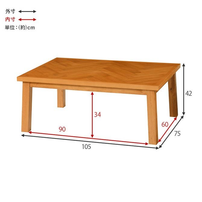へリンボーン柄の天板がお洒落なこたつテーブル