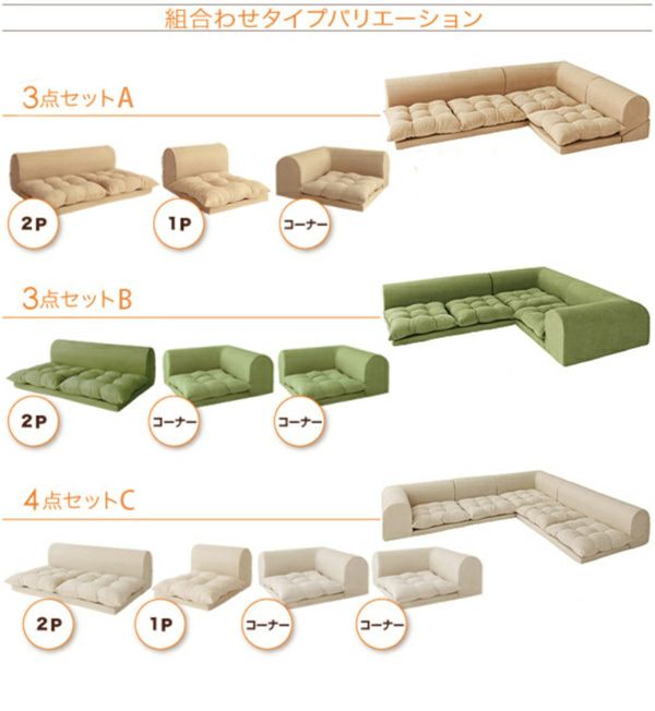 対面、コーナー、一列スタイルなどお部屋に合わせて組み替えが可能です。フロアタイプなので冬はこたつにぴったり!