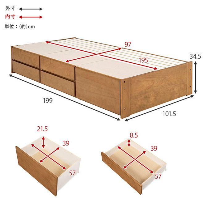 【サイズ】 (約)幅101.5×奥行199×高さ34.5×床面高34.5cm
