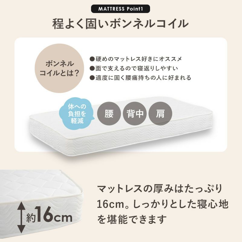 硬めのマットレスが好みの方にオススメ!身体を面で支えてくれるので、寝返りがうちやすくしっかりとした寝心地を感じられます。
