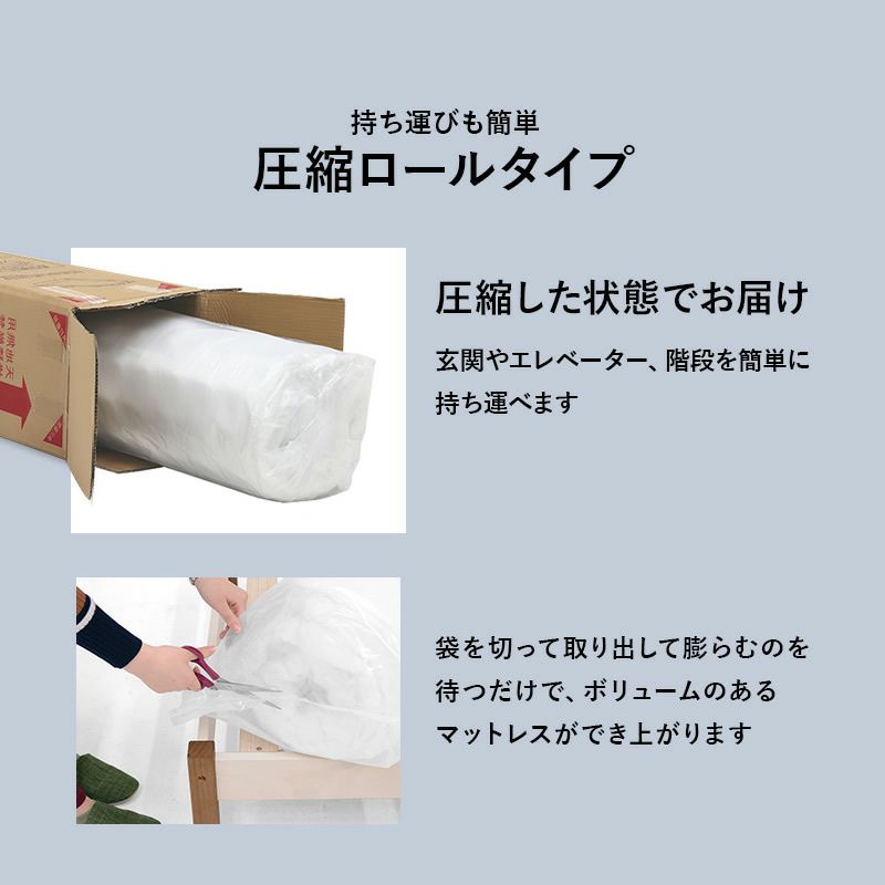 圧縮ロール梱包 ショート丈マットレス セミシングルショート