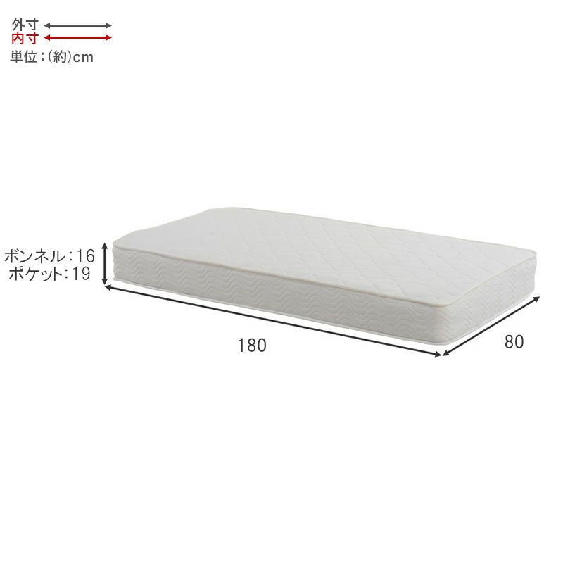 【サイズ】 (約)幅80×奥行180×高さ16cm(ボンネル)・19cm(ポケット)