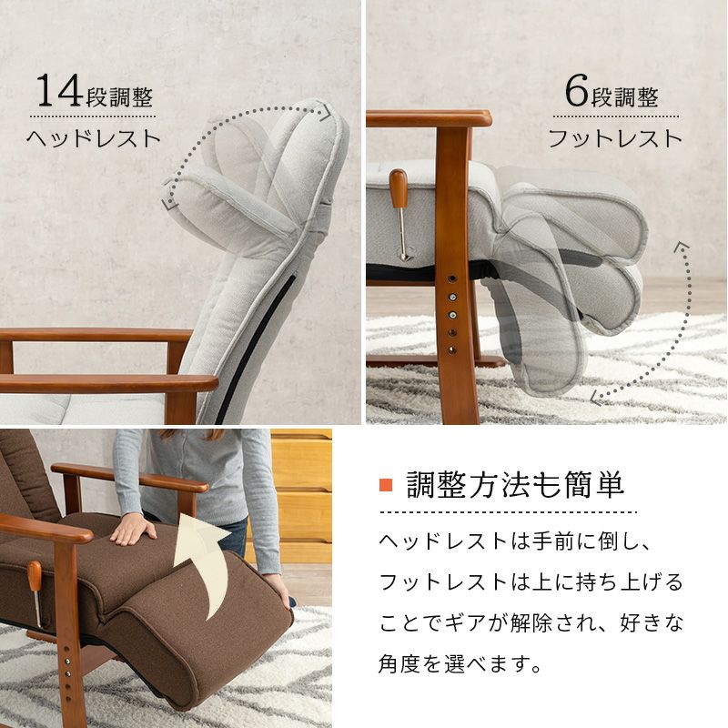 リクライニング機能・フットレスト付!ポケットコイル内臓のハイバック高座椅子