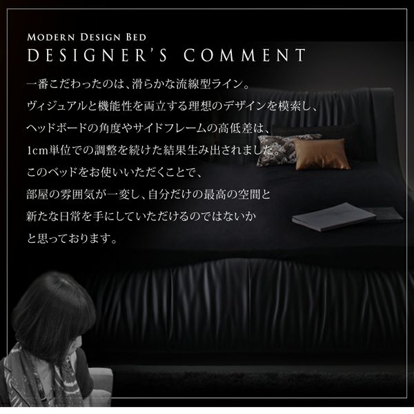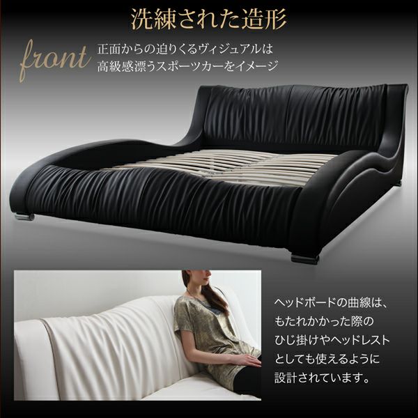 デザイン性、くつろぎ機能、最高品質、全てを兼ね備えたデザイナーズベッド。衝撃のあるデザインはヴィジュアルだけでなく、ヘッドボードにもたれかかった際のくつろぎまで計算された設計。至高のくつろぎ空間を実現するためダブルとクイーンの2サイズ展開。 広い空間で最高の癒しをご堪能下さい。
