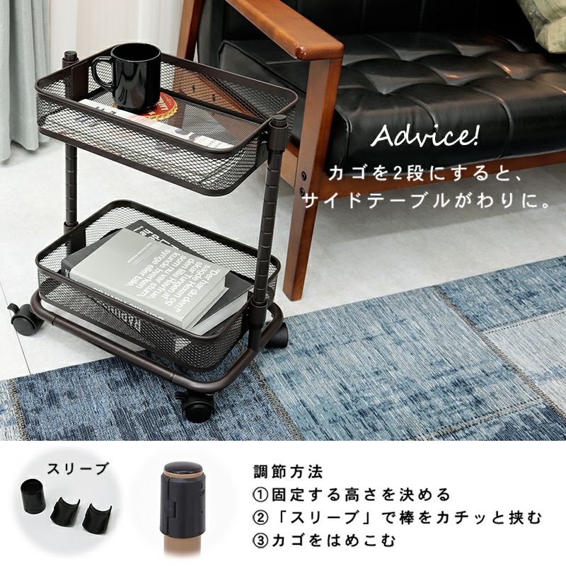 かごを2段にしてサイドテーブルにも