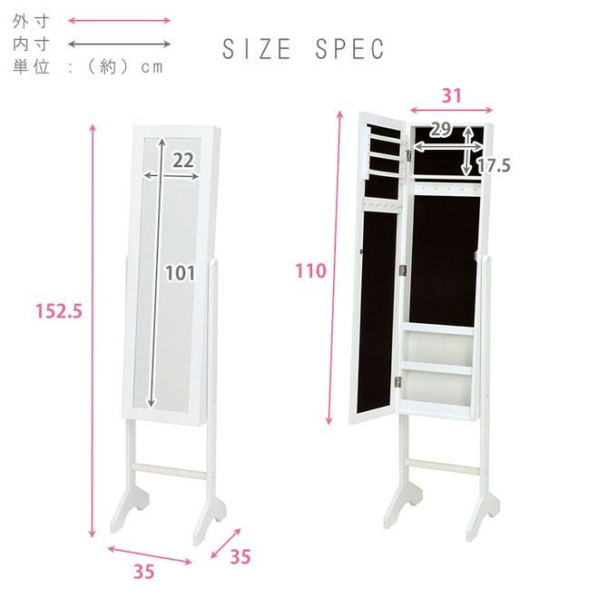 ジュエリーBOXと全身鏡の1台2役