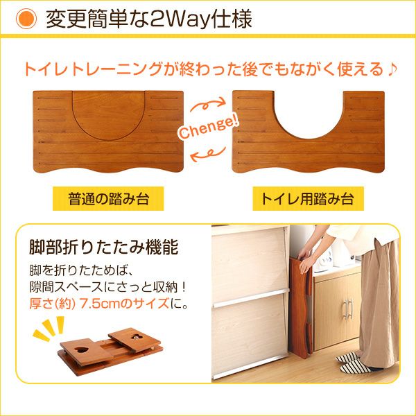 毎日のトイレトレーニングは家族で応援したい!この省スペース設計の踏み台なら大人のふくらはぎの位置にくびれがあるので、設置したままでも邪魔になりません!使い勝手を考えた安心・安全設計の長く使える踏み台です。