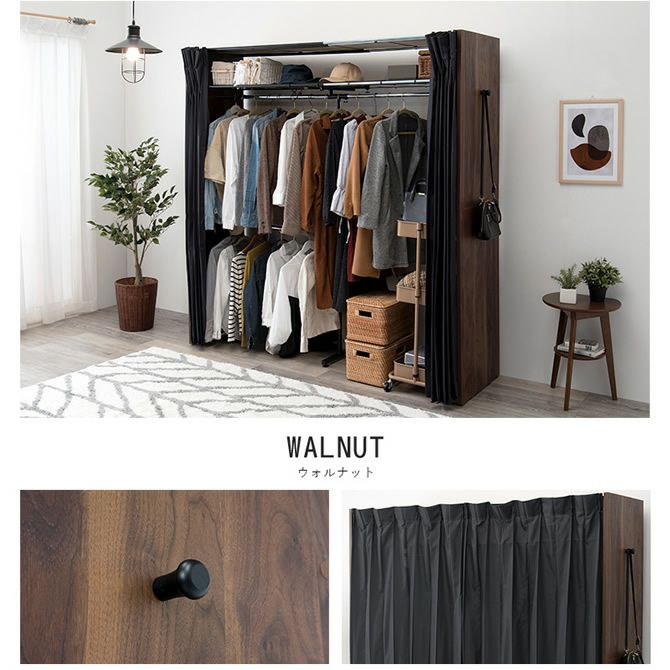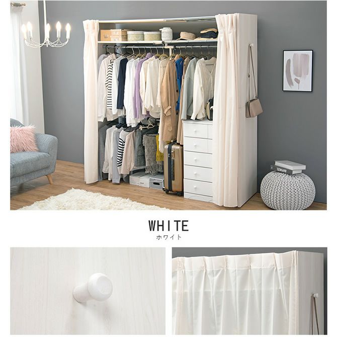 カーテンがあれば大事なお洋服をホコリや日焼けから守ってくれます。カーテンを閉めれば見た目もスッキリ!