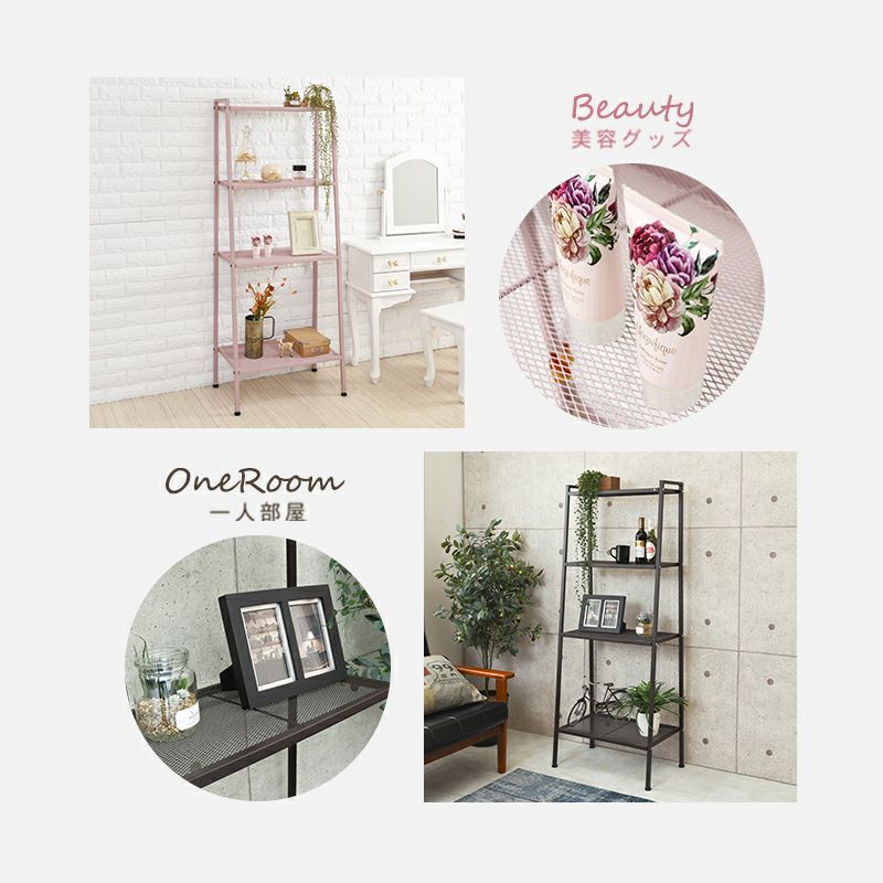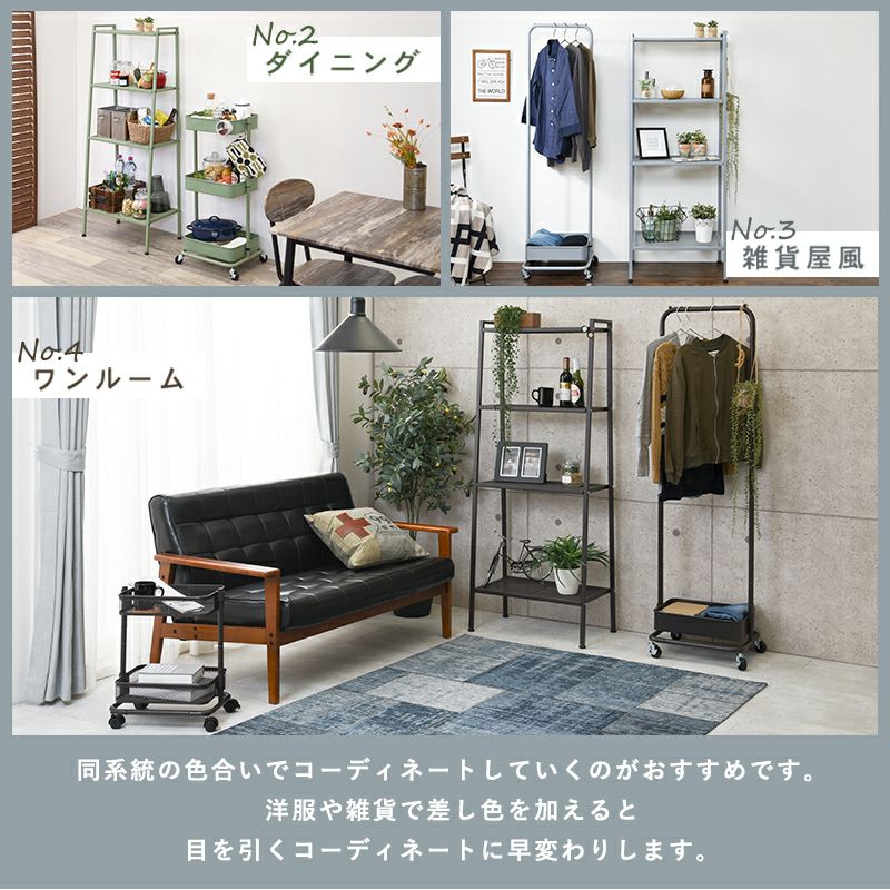 幅約60cm弱の丁度良いサイズ感と、段によって奥行が違うので収納物によって分別が可能。トレンドのくすみカラーがお部屋に馴染むデザインです。