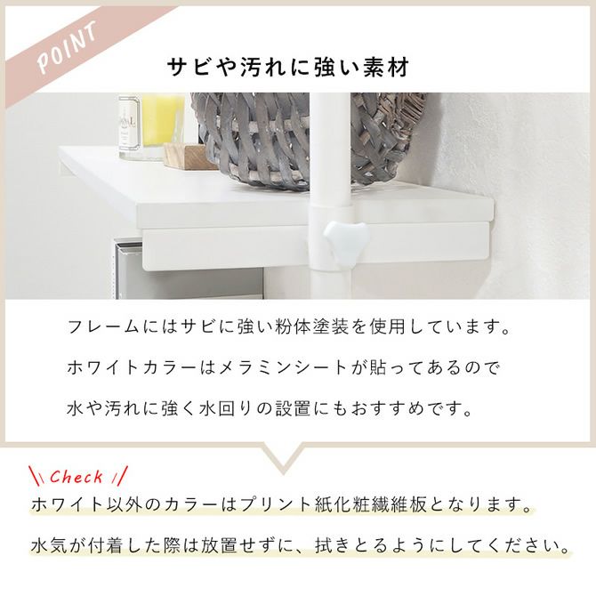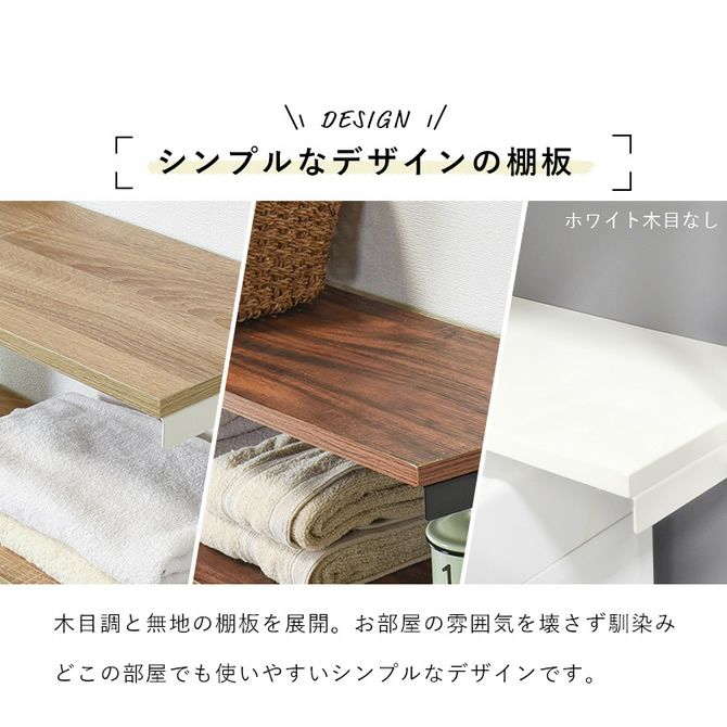 棚板:<ブラウン/ブラック>プリント紙化粧繊維板、<ナチュラル/ホワイト>プリント紙化粧繊維板、<ホワイト/ホワイト>メラミン樹脂化粧繊維板