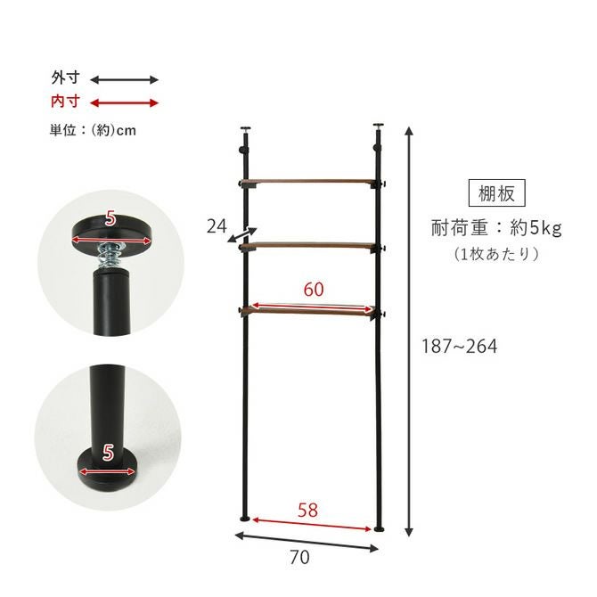 【サイズ】 幅70cm:(約)幅70×奥行24×高さ187~264cm