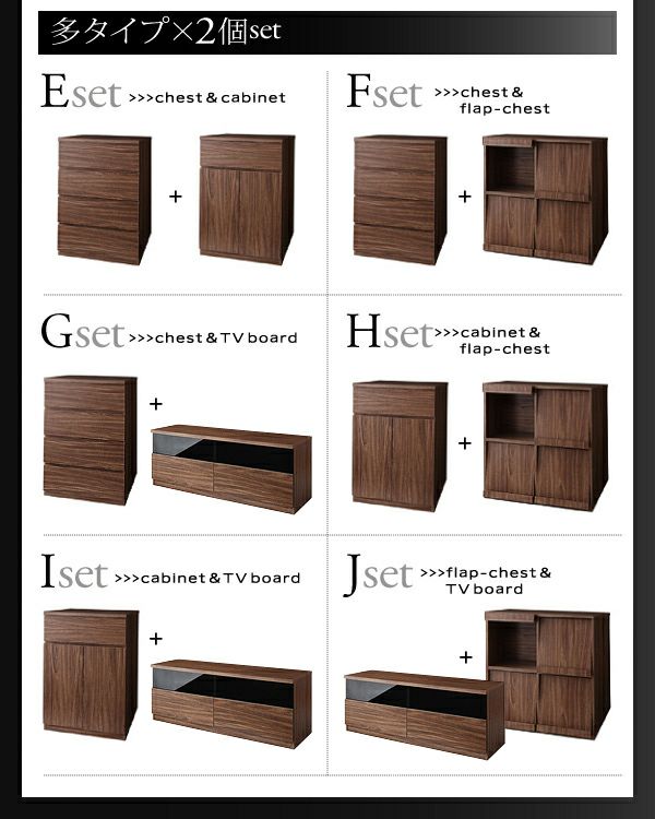 無駄を極限まで削ぎ落としたシンプルなフォルムで取っ手などもなく見た目にもすっきりとした印象です。本物の質感を醸し出す特殊な加工素材を使用したウォルナット調の木目からは温もりが伝わるデザイン。チェストやキャビネットなどと組み合わせも可能で、お得なセット販売もございます。