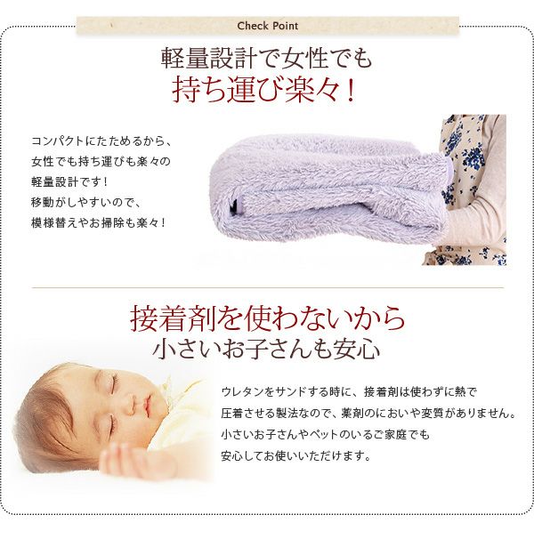 お好みやライフスタイルに合わせて、ふかふかタイプ約5mm厚と、もっとふかふかタイプ約20mm厚をご用意しました。
