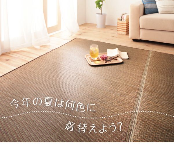 カラーは5色展開、1人暮らしサイズから6畳サイズまでどんな空間もスグに夏色に。い草は通気性がよく、サラっとした肌ざわりで、ベタベタする日本の夏を快適に過ごすことができます。6mm厚のウレタンフォームがずっと座っていても疲れ知らずの優しい座り心地に。