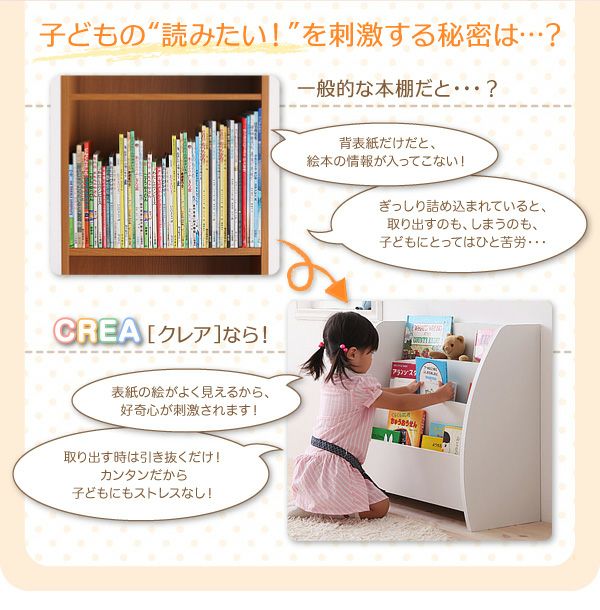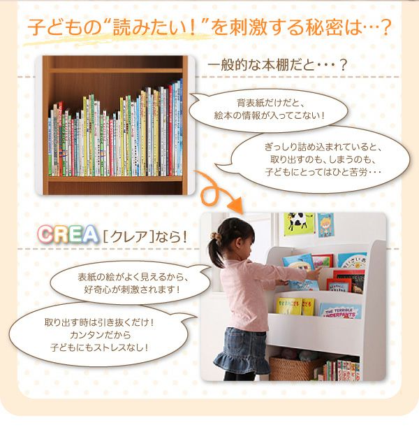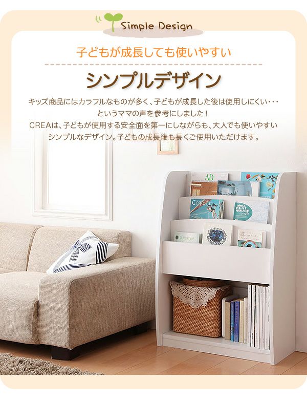 他の画像を見る ホワイト ブラウン ナチュラル 完成品!シンプルデザインキッズ収納家具シリーズ 【CREA】クレア 絵本ラック カートに入れる お気に入りに登録する 当店特別価格 ¥ 12,490 税込