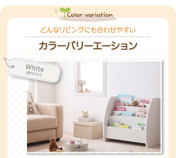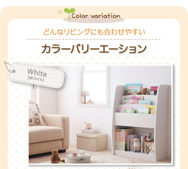 他の画像を見る ホワイト ブラウン ナチュラル 完成品!シンプルデザインキッズ収納家具シリーズ 【CREA】クレア 棚付絵本ラック カートに入れる お気に入りに登録する 当店特別価格 ¥ 17,990 税込
