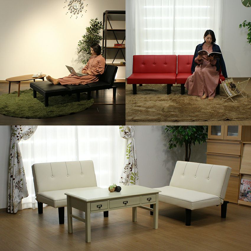 分割タイプで背もたれの角度を工夫すれば色々なくつろぎ方ができる万能なソファー。ステッチがさりげないワンポイントのシンプルなデザインです。