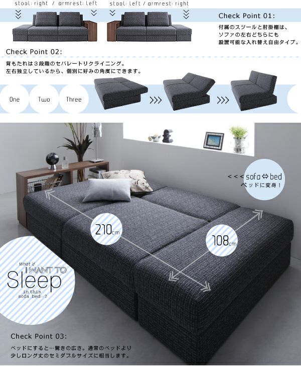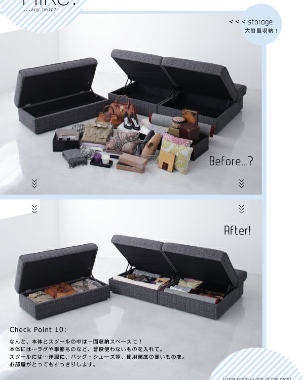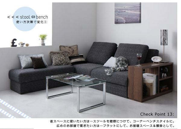 スツールの左右入替も可能!収納スペース付きのマルチソファーベッド