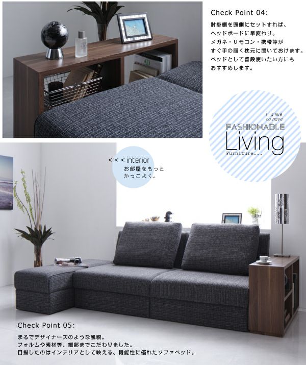 ベッド時に、肘掛棚を頭側にセットすればヘッドボードに早変わり。メガネ・リモコン・携帯等などすぐ手の届く枕元に置いておけます。