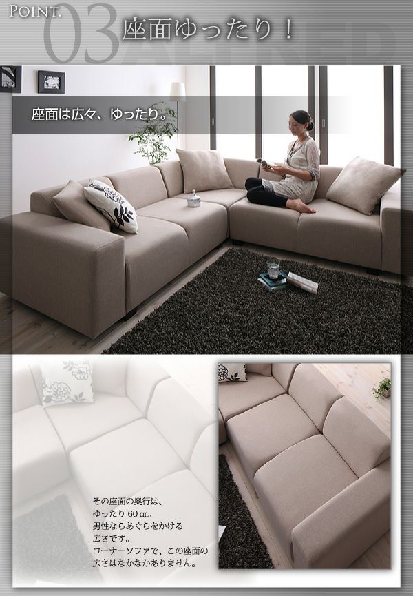 憩う、集う、安らぐ・・・。日本住居に合ったサイズでリビングに最適のコーナーソファー。
