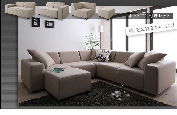 お部屋のサイズやシーンに合わせてレイアウトの変更が出来るコーナーソファー。座面も広々で大人数やご家族での使用にピッタリ!サイズも日本住居向けで、脚部を外したロータイプも可能です。
