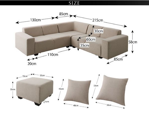 コーナー:幅85cm×奥行85cm×高さ58cm