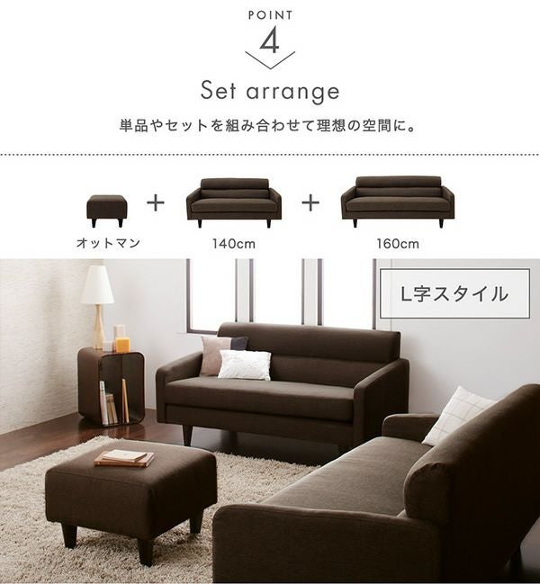 シンプルであり、それでいてインテリアの中心となるようなカタチ。デザイン性のある背もたれが普通のソファーとはまた違った雰囲気を演出。お部屋に合わせて、家族構成に合わせて選べる5サイズ展開。各サイズにオットマンを付属した、お得なセット販売もございます。