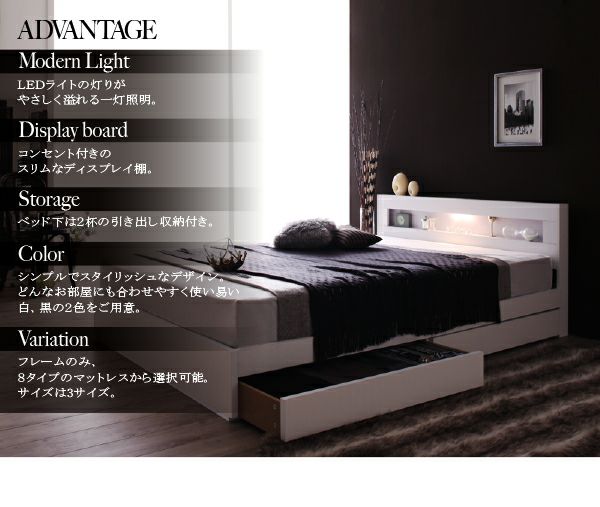 他の画像を見る ホワイト ブラック 改行ラベル S SD D LEDライト・コンセント付き収納ベッド 【Estado】エスタード 在庫切れ 詳細を見る お気に入りに登録する 当店特別価格 ¥ 39,400 税込 〜 当店特別価格 ¥ 税込