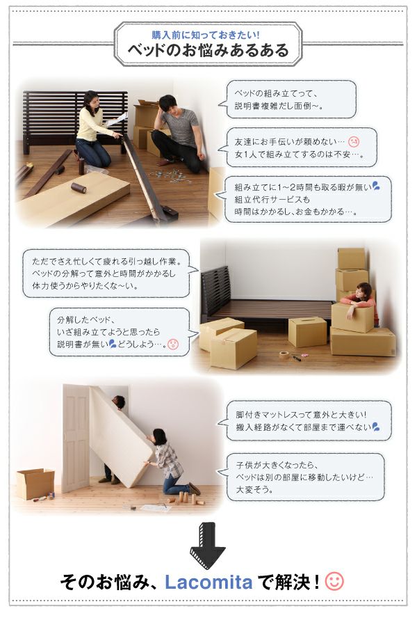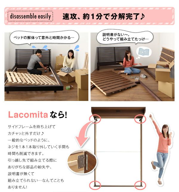 工具いらずの組み立て・分解簡単収納ベッド 【Lacomita】ラコミタ