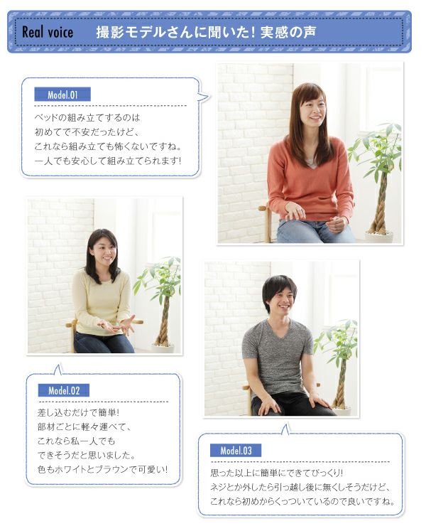 面倒なベッドの組立作業に画期的な商品が登場!!もともと開けてある穴に引っ掛けるだけなので、ネジ締めも不要!誰でも簡単に組み立て可能なのに、安心の日本製フレームは耐荷重200kgで強度もしっかり!!