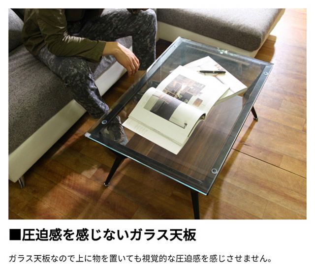 木のぬくもりを感じる中棚が特徴のリビングテーブル。天板は強化ガラス製なので、日常で生じる衝撃でも傷つきにくい安心設計。透明感のある天板のおかげで、お部屋に置いても圧迫感がありません。