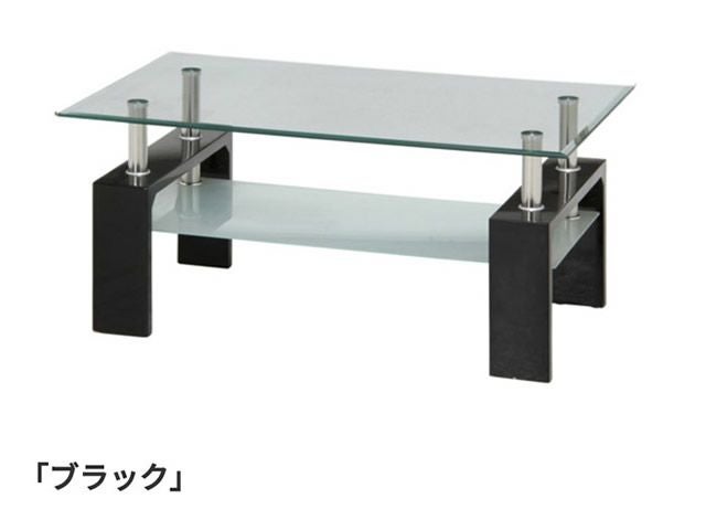 高級感漂う美しいデザインのガラステーブル。収納棚はリモコンや雑誌、小物などが置ける十分なスペース付き。天板は厚みのある強化ガラスなので、傷みにくく長くお使いいただけます。