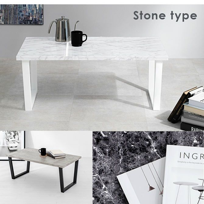 スチール脚とのコントラストで、お部屋のインテリアとしての存在感を発揮します。木目調・石目調の計6色からお選び頂けます。
