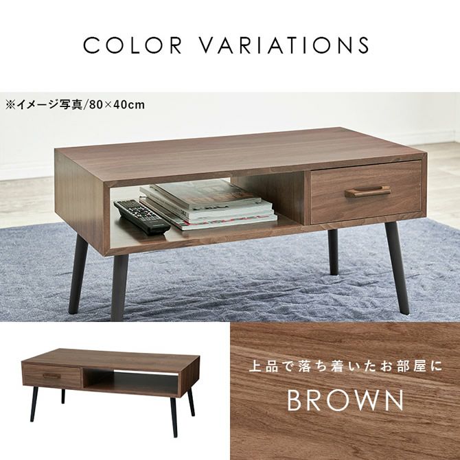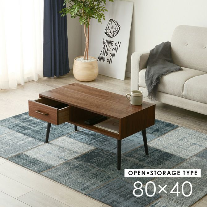 天然木の風合いを感じられるモダンなデザインのローテーブル。オープンスペースと引出しスペースに分かれているので、隠したい小物も手軽に収納出来ます。