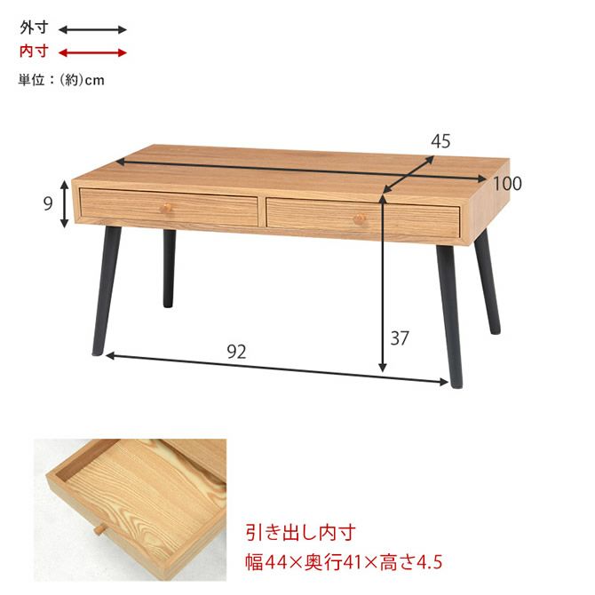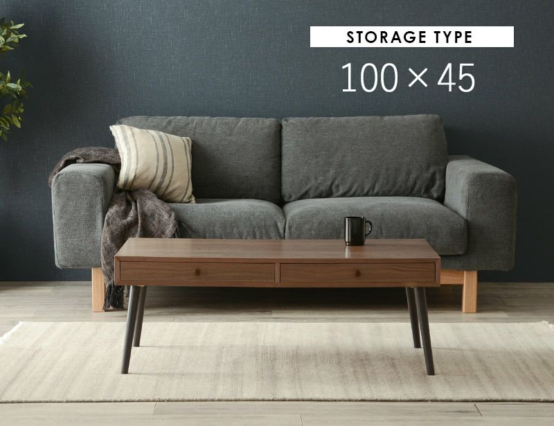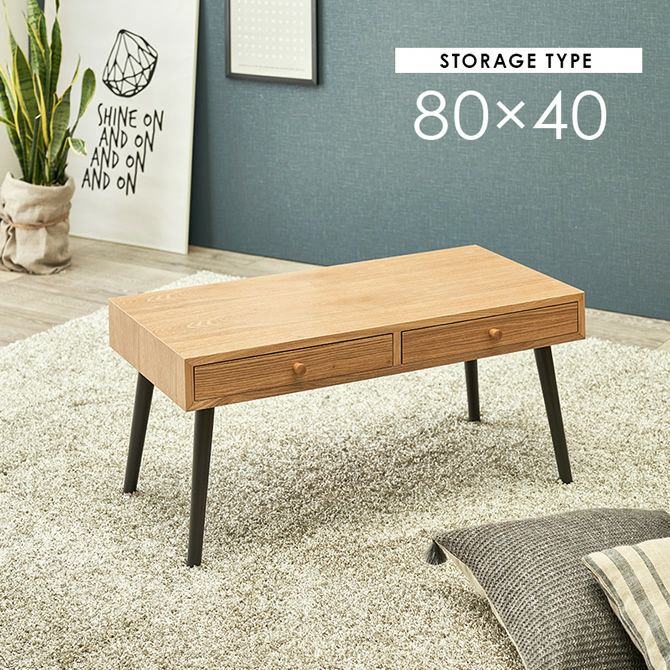 天然木ローテーブル ストレージ(引出し2杯)タイプ