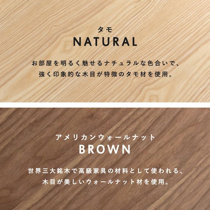 【材質・素材】 主材:天然木化粧繊維板(ナチュラル:タモ材、ブラウン:アメリカンウォールナット材)