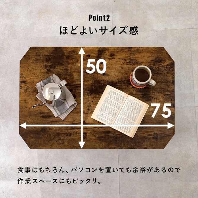 幅75cm、勉強や食事にもマルチに使える天板サイズ