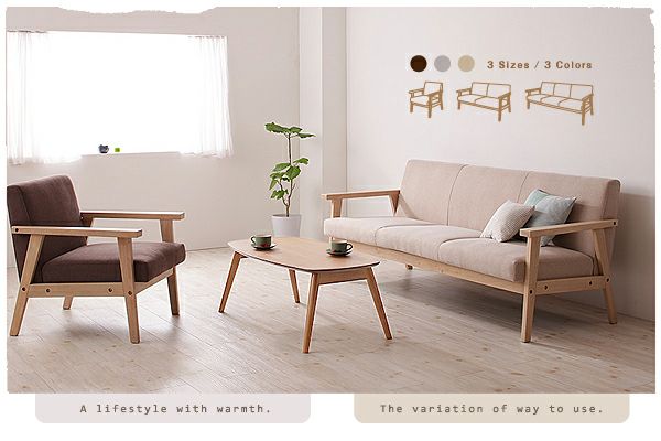 くつろぎの空間にぴったりとマッチする色合いと、シンプルながら飽きのこないデザインが温かみのある暮らしをお手伝い。シリーズで、1人掛け、2人掛け、3人掛けの3タイプを取り揃えましたので、置き場所に合わせて組み合わせもお楽しみください。