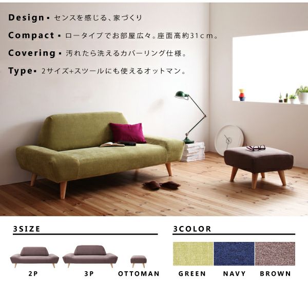 カバーリングモダンデザインローソファー 【ORGA】オルガ 3P
