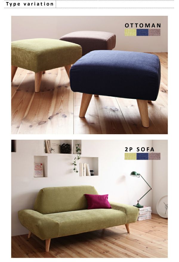 オルガは下記の3タイプをご用意!ソファ+オットマンで寛げる癒しの空間に。また、それぞれを色違いで合わせる事でより一層お部屋のインパクトになります♪