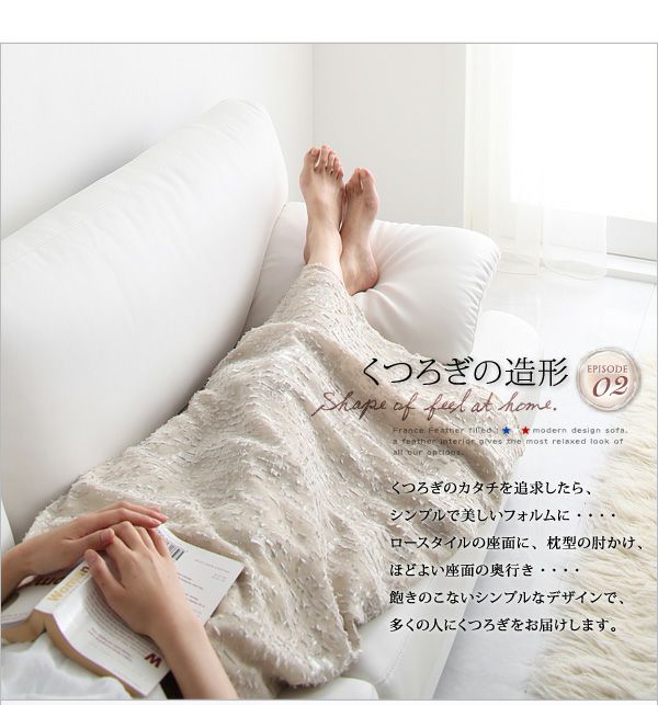 他の画像を見る ホワイト フランス産フェザー入りソファー 【VOGUE-coco】ヴォーグ・ココ3P 在庫切れ 詳細を見る お気に入りに登録する 当店特別価格 ¥ 63,900 税込 〜 当店特別価格 ¥ 税込