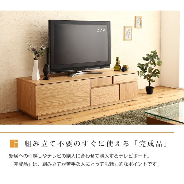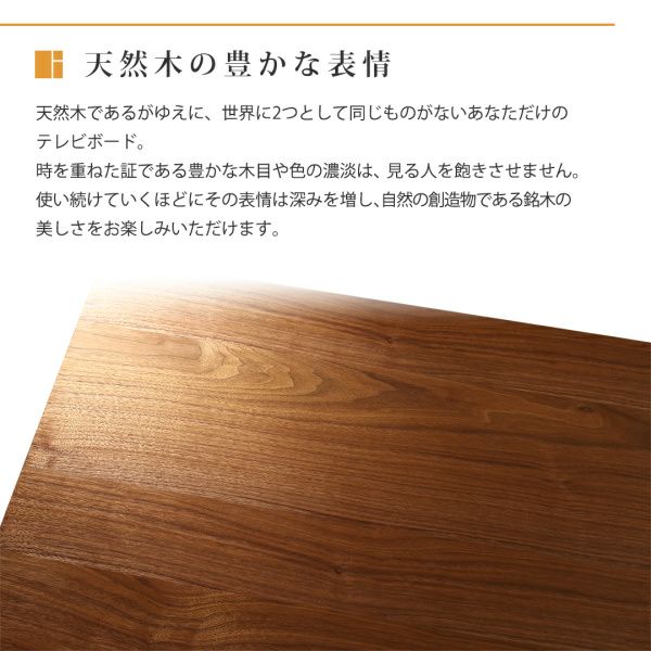 天然目であるがゆえに世界に2つとして同じものがない、あなただけのテレビボード。時を重ねた証である豊かな木目や色の濃淡は、見る人を飽きさせません。新居への引越しやテレビの購入に合わせて購入するテレビボード。「完成品」は、組み立てが苦手な人にとっても魅力的なポイントです。